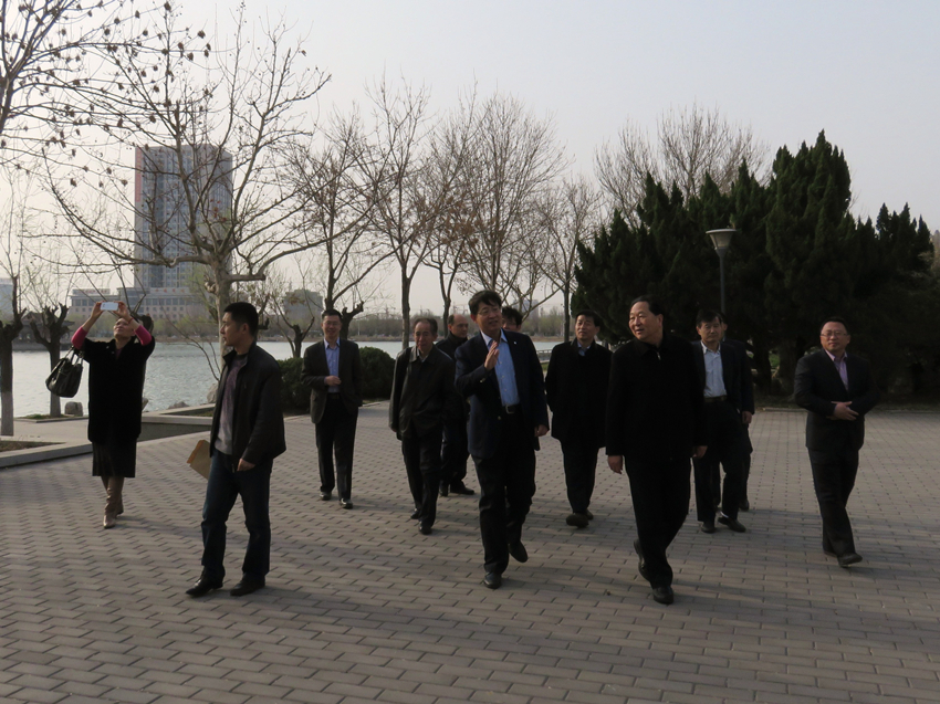 本次山东省高等学校科技计划项目的验收和鉴定工作是由山东省教育厅统一组织进行,因此也得到了学院领导和教科研管理部门的高度重视。项目验收和鉴定之前,中国石油大学胜利学院院长刘衍聪、中国石油大学胜利学院副院长赫正、教学科研处处长周西臣、副处长李军陪同省教育厅领导和各位专家穿过朝阳中春意盎然的荟萃湖,参观考察了生机勃勃的校园。胜利学院院长刘衍聪还参加了本项目的答辩和讨论环节。