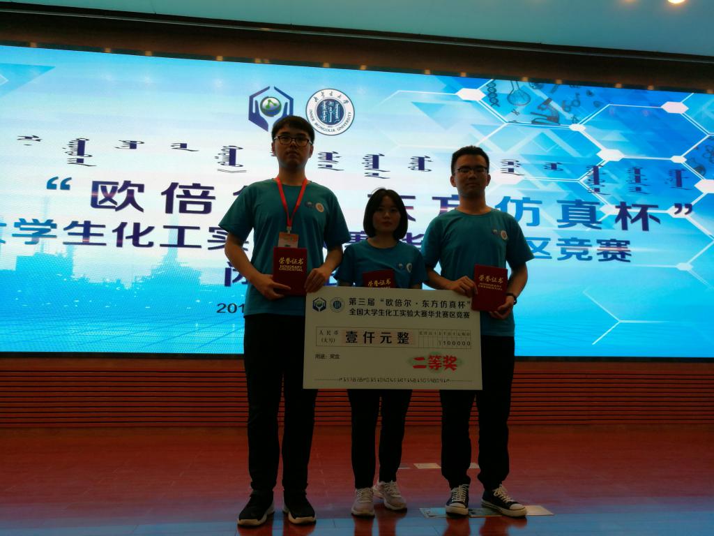 6月29日至7月1日,由教育部高等学校化工类专业教学指导委员会和中国化工教育协会主办、内蒙古大学承办的第三届 “欧倍尔-东方仿真”杯全国大学生化工实验大赛华北赛区竞赛在呼和浩特举行,永利23411集团由李陈、徐梓璇、姚敏三位同学组成的代表队参加比赛并获赛区二等奖。参赛队伍指导老师为张会敏、姚媛媛和史德青。