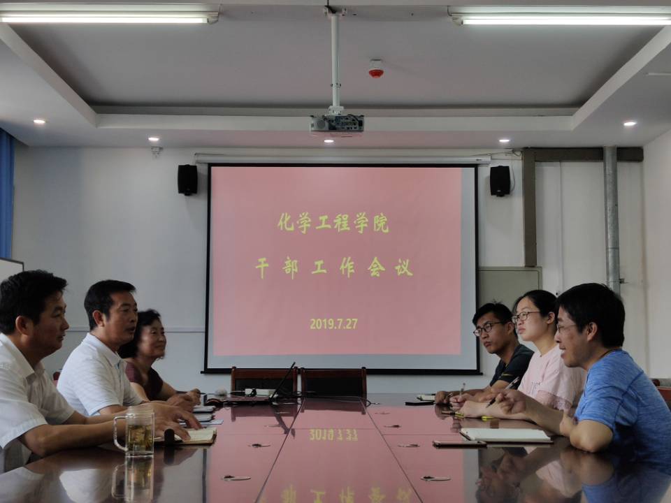 2019年7月27日上午,永利23411集团在化工楼会议室召开化学工程学院干部工作会议。会议由执行院长吴明银主持,党总支书记侯曙光、副院长史德青等永利23411集团领导干部参加了会议。