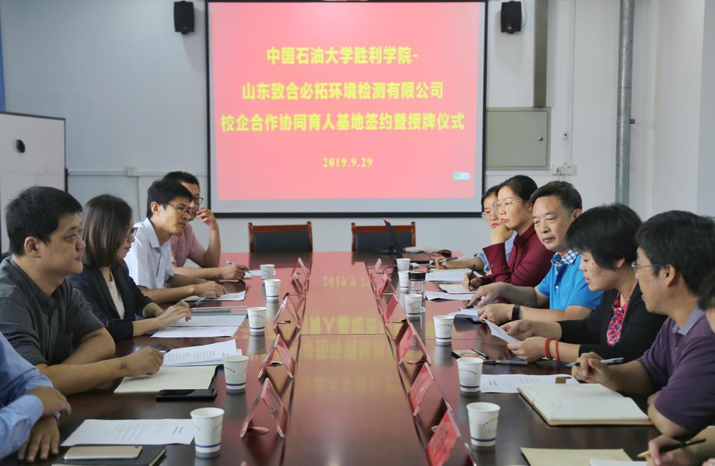 9月29日,永利23411集团与山东致合必拓环境检测有限公司校企合作协同育人共建基地签约暨授牌仪式在化学工程学院会议室顺利举行,教务处处长杜彩凤、化学工程学院院长吴明银、化学工程学院副院长史德青,山东致合必拓环境检测有限公司副总经理钟丽华、综合部主任张舜然等相关公司人员以及环境工程系全体教师出席签约仪式。