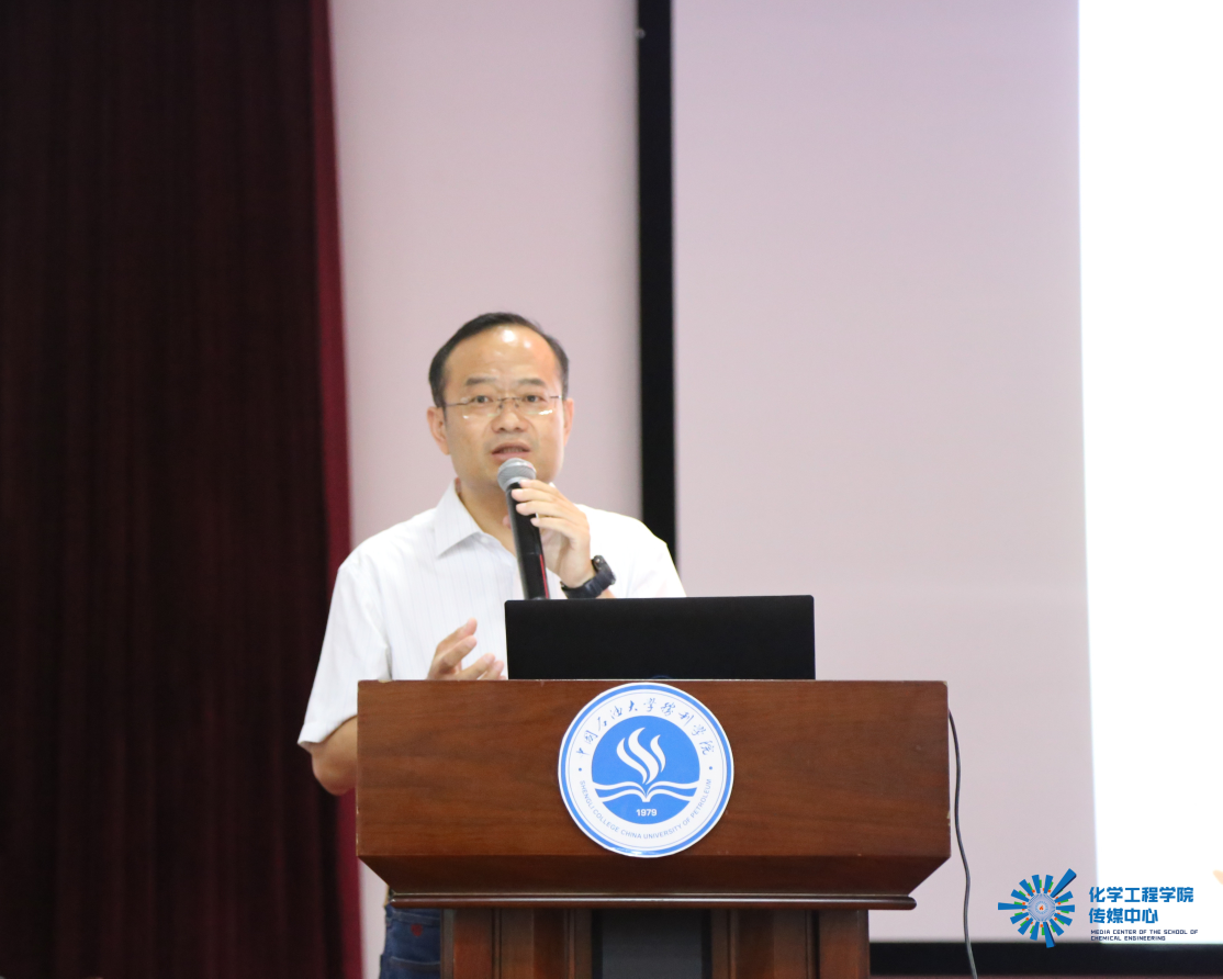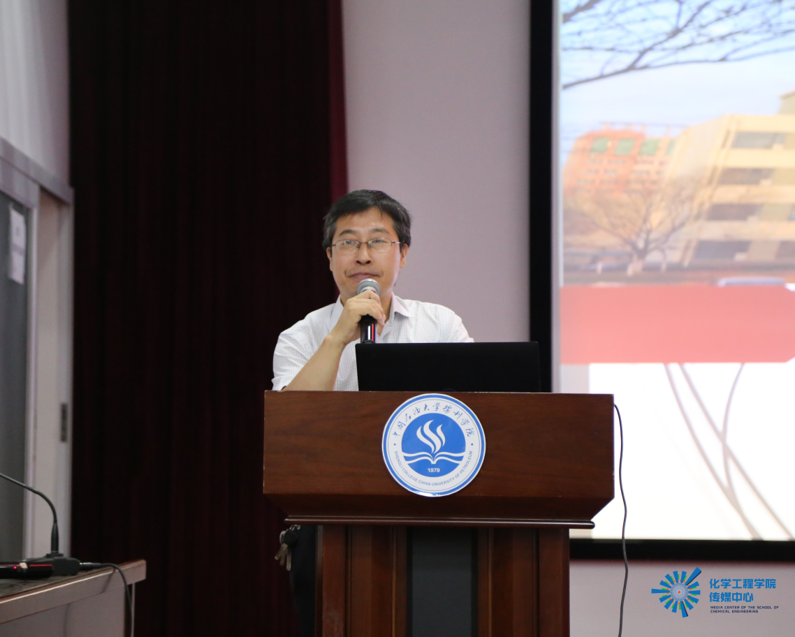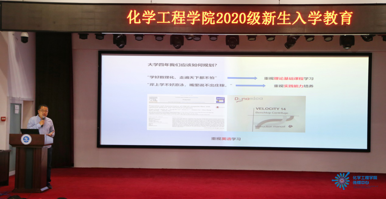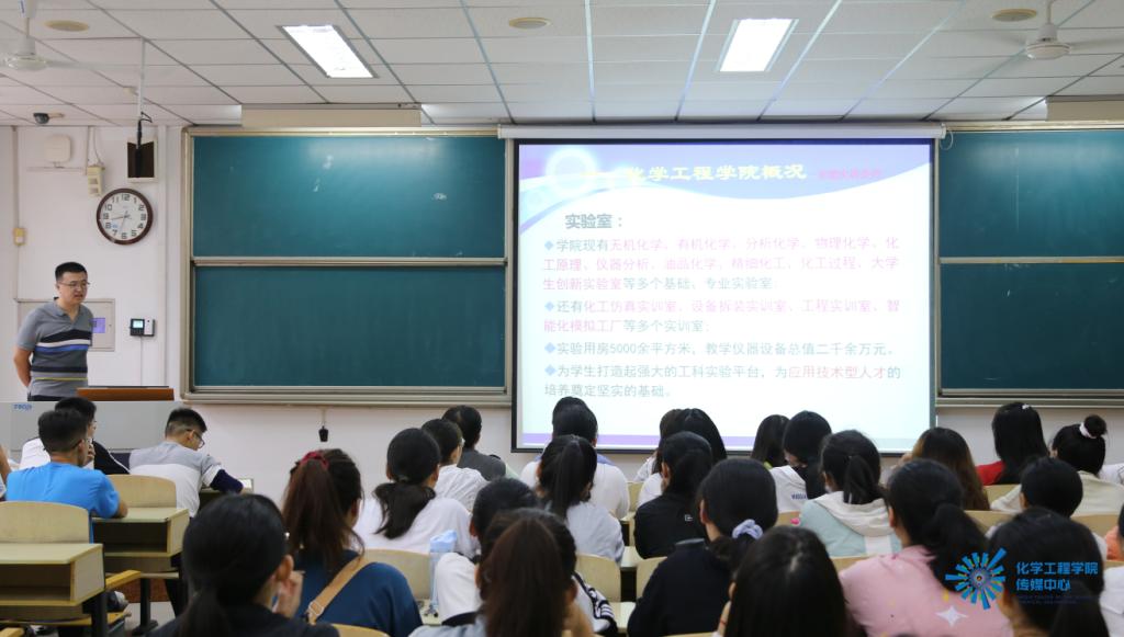 接下来,副院长史德青从“带你了解校园和化学工程学院”开始,让新生们更好地了解学院环境以及向新生们展示了创新创业实验室、大学生创业训练计划项目等,展示了化学工程学院学生科技成果。