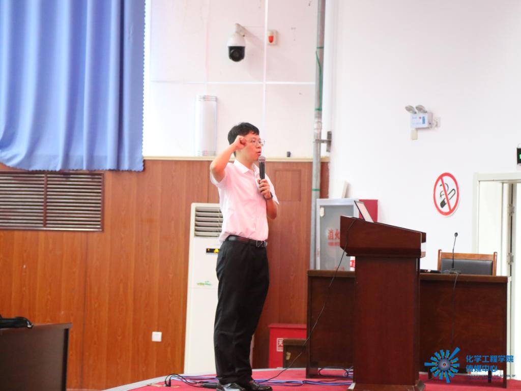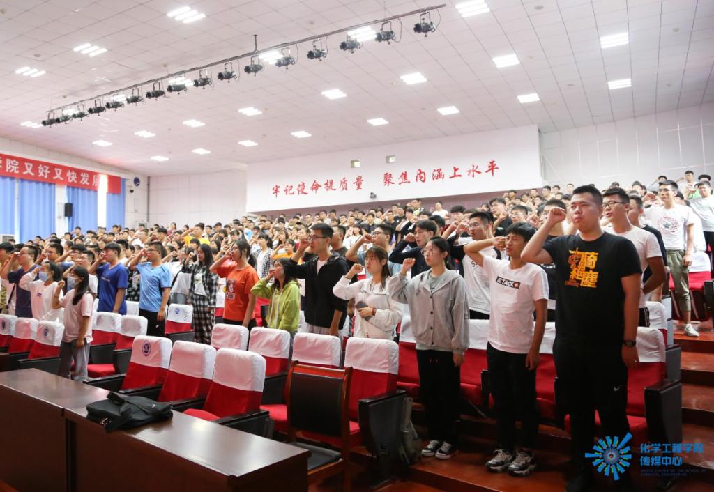 最后,由俞帅一老师带领全体2020级学生进行宣誓,要热爱胜院,热爱化工,不负青春,不负期望。