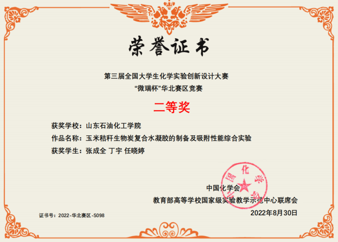 据悉,全国大学生化学实验创新设计大赛是由中国化学会和教育部高等学校国家级实验教学示范中心联席会主办的全国性大学生学科竞赛,是继“全国大学生化学实验邀请赛”后我国高等化学学科面向本科生进行的又一最高级别的比赛。