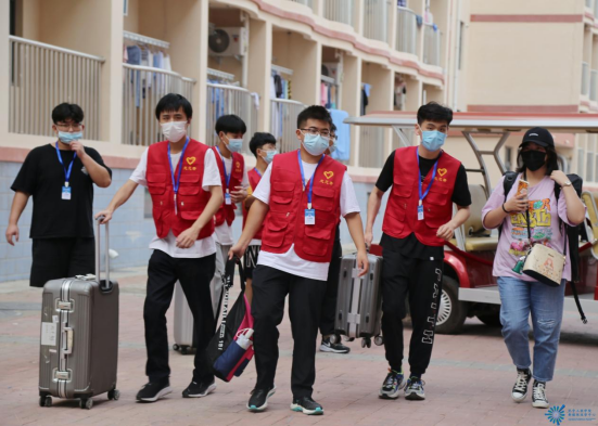 志愿者们还帮助新生将行李送到宿舍,确保宿舍安全有序、物品到位。