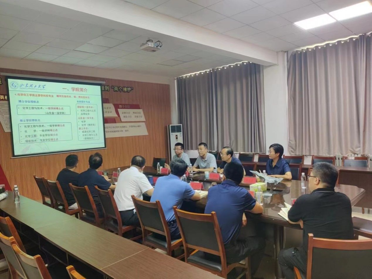为推进教学合格评估工作及硕士点专业建设,7月18日,化学工程学院党总支书记、分管日常工作的副院长张春晓带队,赴山东理工大学化学化工学院调研交流。山东理工大学化学化工学院党总支书记王介忠、院长杨乃涛以及有关系室负责同志参会交流。化学工程学院副院长杜春安,应化系主任蒋秀燕,应化系副主任孔凡厚参加活动。