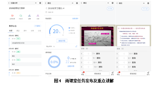 (2)对于化学工程与工艺专业和应用化工技术专业的《仪器分析》课程,该课程知识点较为零散,与之前所学的课程知识点连接较为紧密,需要更多的互动和课堂掌握型,采用:雨课堂发布预习任务+腾讯课堂直播授课+QQ群发布课程作业及答疑的方式进行。