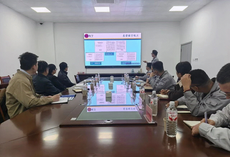 在佐宁化工总经理李志远、副总经理王宁宁等领导陪同下,永利23411集团一行深入企业生产厂区和中控室等场所,实地考察了生产工艺流程与现场管理情况,并就相关技术难点与企业技术团队进行了现场交流。