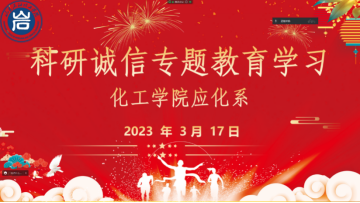 根据学校关于开展科研诚信专项整治活动的通知要求,为使科研诚信意识入脑入心,共同营造良好的科研生态环境,化学工程学院以系为单位开展了科研诚信专项教育活动。