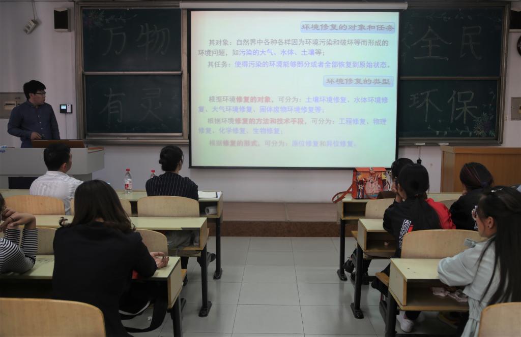 三位作报告的老师毕业于国内知名大学,从事过多项环保科研项目,拥有丰富的环保部门工作经验。他们分别是:毕业于中国海洋大学的刘叶老师,她的报告主题是世界环境公害事件,由历史上震惊全球的公害事件来唤醒大家的环保意识,警示后人保护环境人人有责;第二位老师是毕业于吉林大学张海涛老师,他报告的题目是环境修复技术,为大家介绍常用的三大类环境修复技术(物理法、化学法、生物法);第三位是毕业于北京工业大学的王宝磊老师,他报告的题目是固体废弃物处理与处置,王老师结合东营每年产生固废的最新现状,谈固废的危害及最经济有效的处理处置技术。