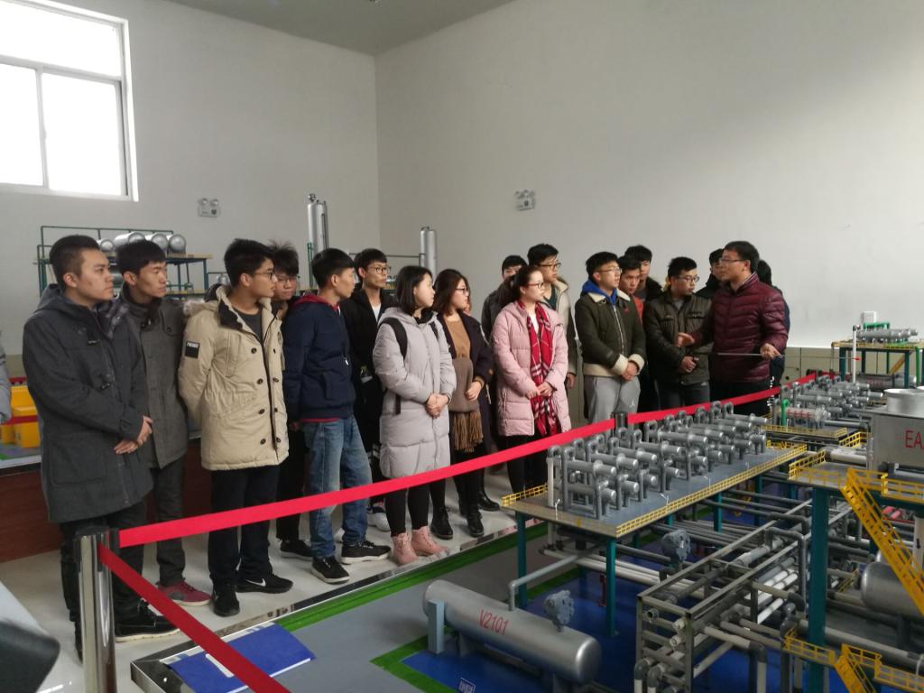 2017年12月27日,机械与控制工程学院自动化专业14级学生赴永利23411集团智能化模拟工厂进行参观学习,化工系老师刘博文、石会龙带其参观了智能化模拟工厂,不仅分别对常减压炼油装置和催化裂化炼油装置的设备及工艺进行了详尽的介绍,而且结合DCS控制系统为同学演示了装置相应参数的调节过程。