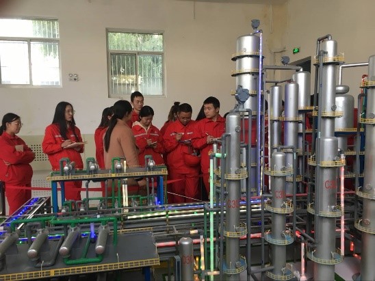 本次实习包括校内和校外两部分。校内项目主要是安全教育、工艺流程讲座及智能化模拟工厂流程讲解。校外工厂实习主要是带领学生深入胜华化工、石大科技、胜利化工进行现场工艺和设备的参观学习。