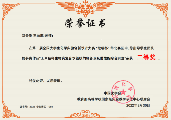 据悉,全国大学生化学实验创新设计大赛是由中国化学会和教育部高等学校国家级实验教学示范中心联席会主办的全国性大学生学科竞赛,是继“全国大学生化学实验邀请赛”后我国高等化学学科面向本科生进行的又一最高级别的比赛。