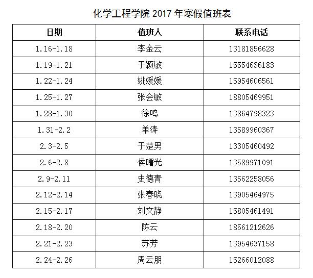 化学工程学院2017年度寒假工作安排.doc