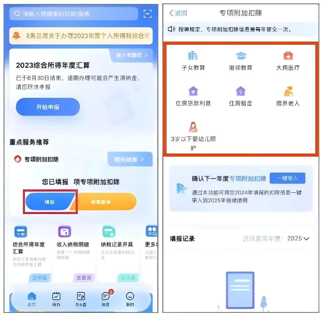 2025年度个税专项附加扣除确认可分为以下3种情形: