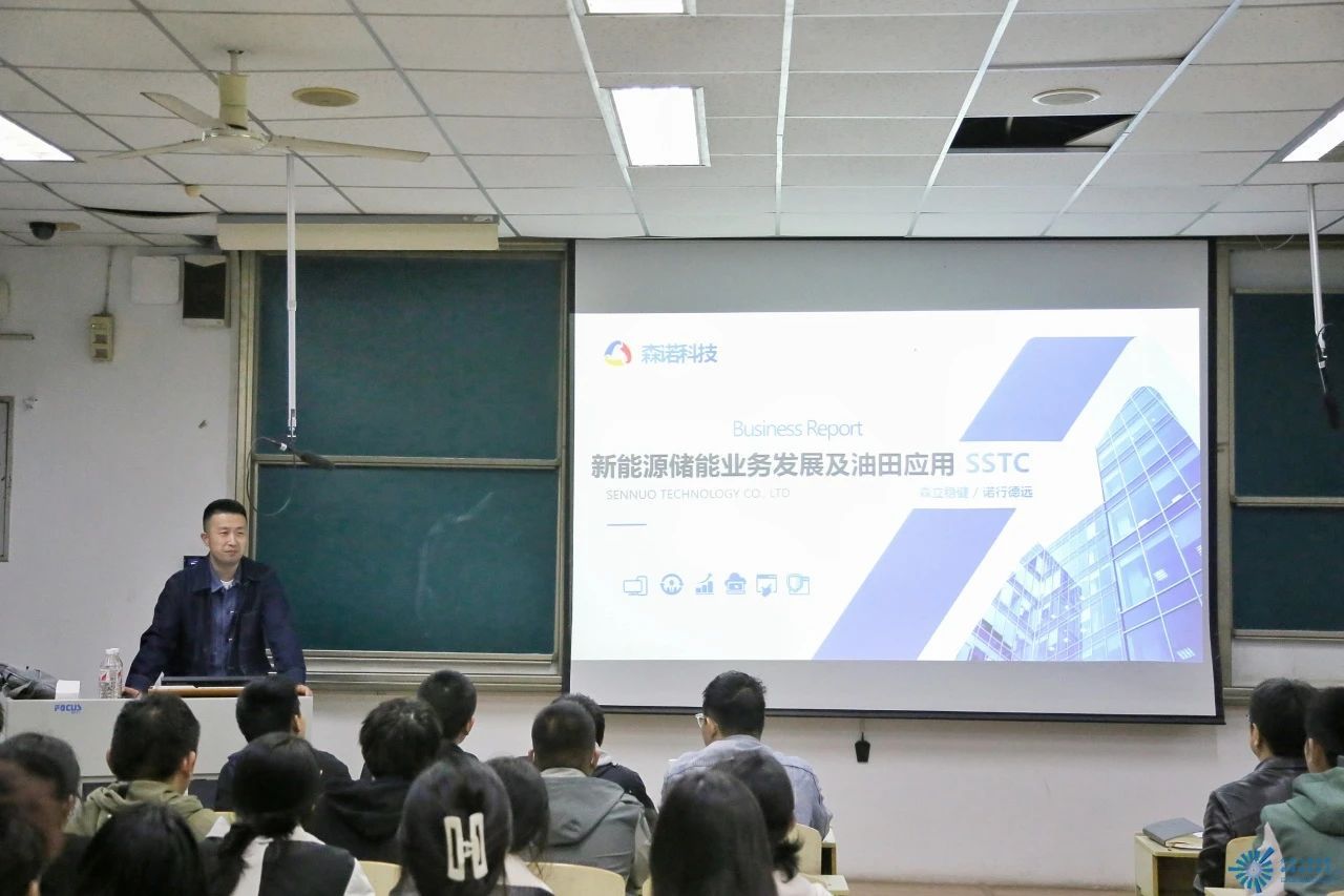 4月2日,化学工程学院在第四教学楼4101教室举办“新能源储能业务发展及油田应用”主题报告会。会议由化学工程学院副院长宋新旺教授主持,山东东营森诺科技有限公司新能源中心副总工程师李帅龙担任主讲。副院长刘文静、徐鸣教授、曹鹏教授、孔凡厚老师等及化学工程学院储能专业学生代表共计100余人参会。