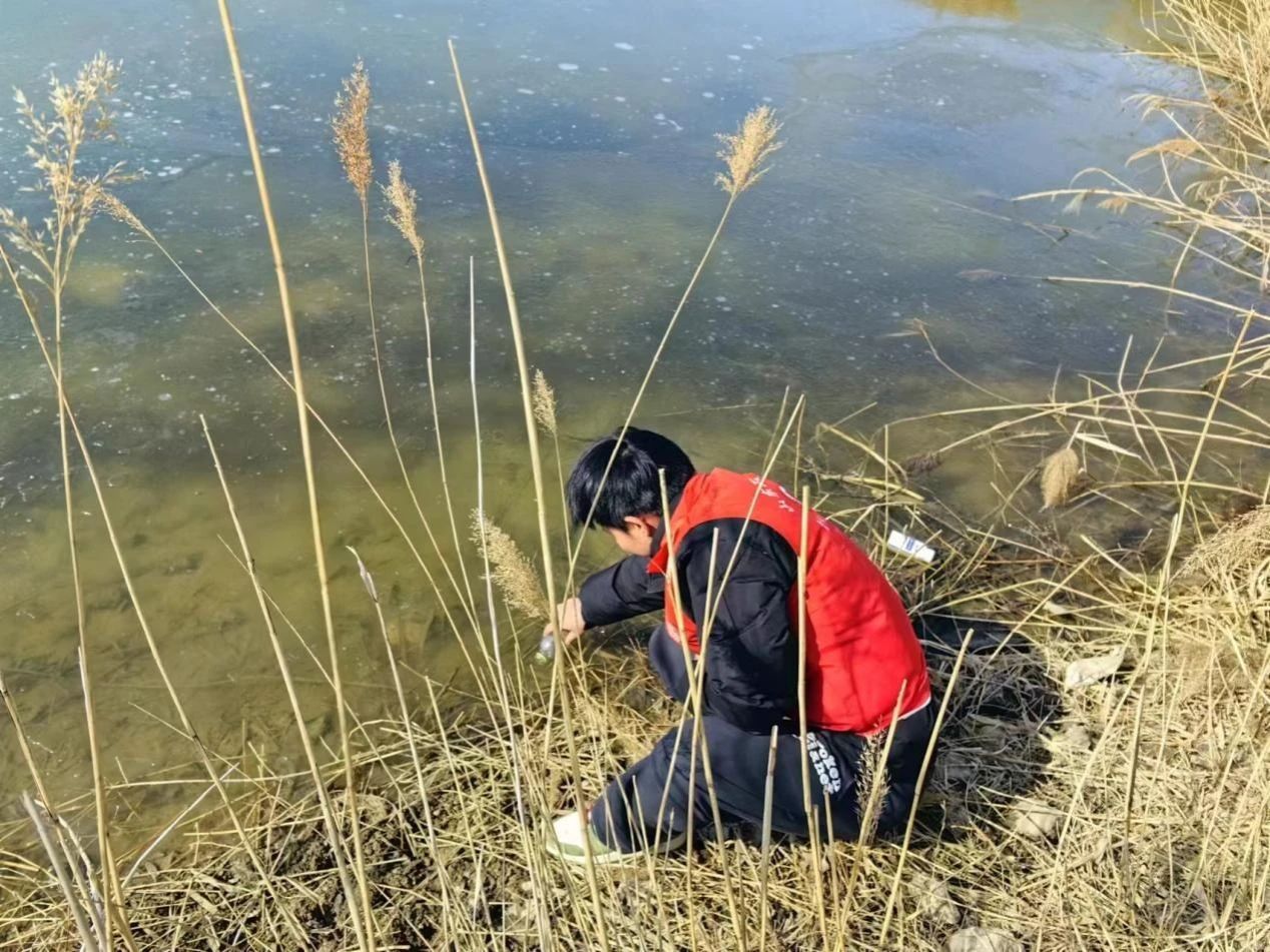 调研工作由学院院长助理蒋浩带队,小组成员实地观看王庄险工石碑简介,了解黄河历史文化;邀请当地居民填写调查问卷,让居民们了解保护湿地生态的政策方针,询问他们对于湿地保护和生态旅游的看法;最后,实践队成员在附近水域采集水样,用专业仪器进行水质检测。