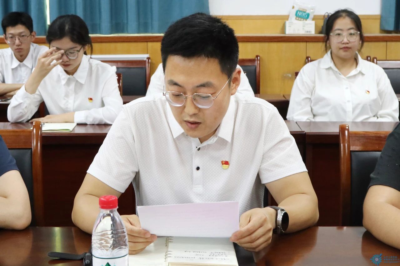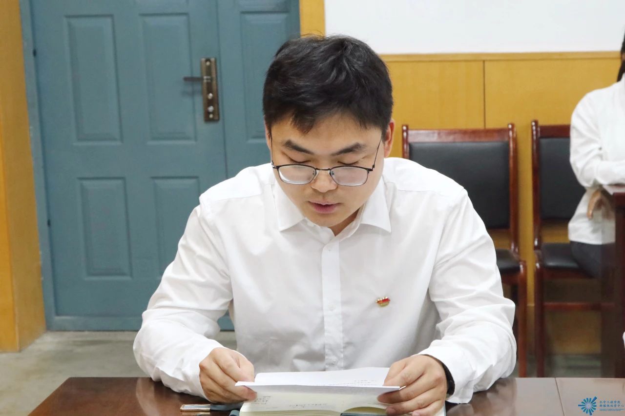 会议第三项,毕业生党员代表李子健发言,他回顾了在校四年的成长经历,表达了对党组织、学院和老师们的感激之情,以及毕业后以实际行动挺膺担当的决心。