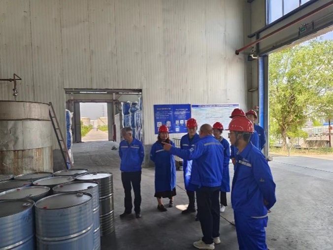在金美化工有限公司厂区驻地,王学会董事长带领师生参观了生产车间、控制机房、消防设施等,他介绍到,金美化工是一家集科研、生产、销售、服务于一体的综合性化工有限公司,主要是精细化学品的生产销售,年生产能力30000余吨,有着良好的发展前景。