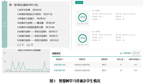 (1)对于环境工程专业的《环境化学》课程,前三周采用“智慧树”上的南开大学的精品课程资源为主,根据课程内容和学生基础,在QQ群中提前给学生安排学习进度和课程学习要求,及时布置课后作业进行学习情况考核为辅的方式进行。