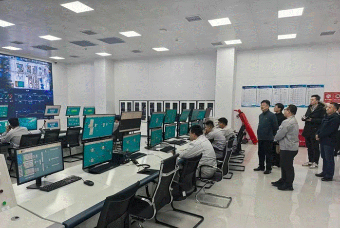 在佐宁化工总经理李志远、副总经理王宁宁等领导陪同下,永利23411集团一行深入企业生产厂区和中控室等场所,实地考察了生产工艺流程与现场管理情况,并就相关技术难点与企业技术团队进行了现场交流。